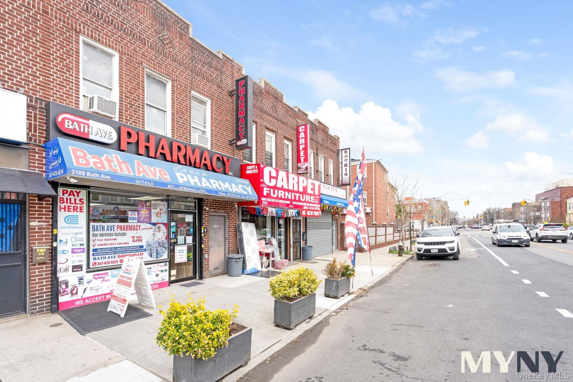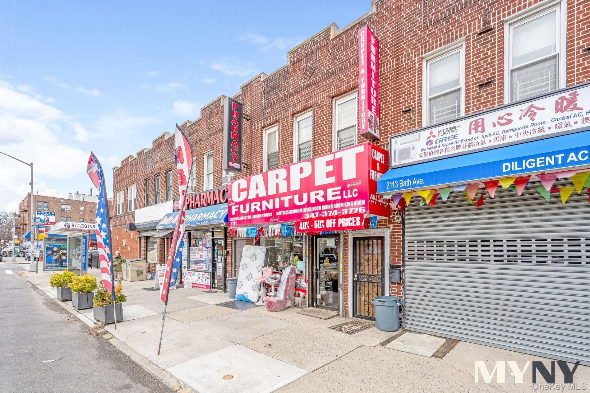 Prime mixed-use brick building ideally positioned in the heart of Bath Beach along high-traffic Bath Avenue. This property offers a compelling combination of residential comfort and commercial potential.The ground floor features a highly visible, flexible commercial space suitable for retail, office, or service-oriented businesses, benefiting from consistent foot and vehicle traffic. The property sits on a 17' x 50' lot with a 17' x 43' building footprint.Surrounded by established restaurants, shops, schools, and convenient public transportation (B6 and B82 bus lines), the location is further enhanced by its proximity to 86th Street and the Caesar Bay Shopping Center.The upper residential unit offers a spacious two-bedroom, one-bath layout with bright interiors and well-proportioned rooms. Whether utilized for owner occupancy or as an income-producing rental, the residential component adds meaningful value and flexibility to this investment opportunity.